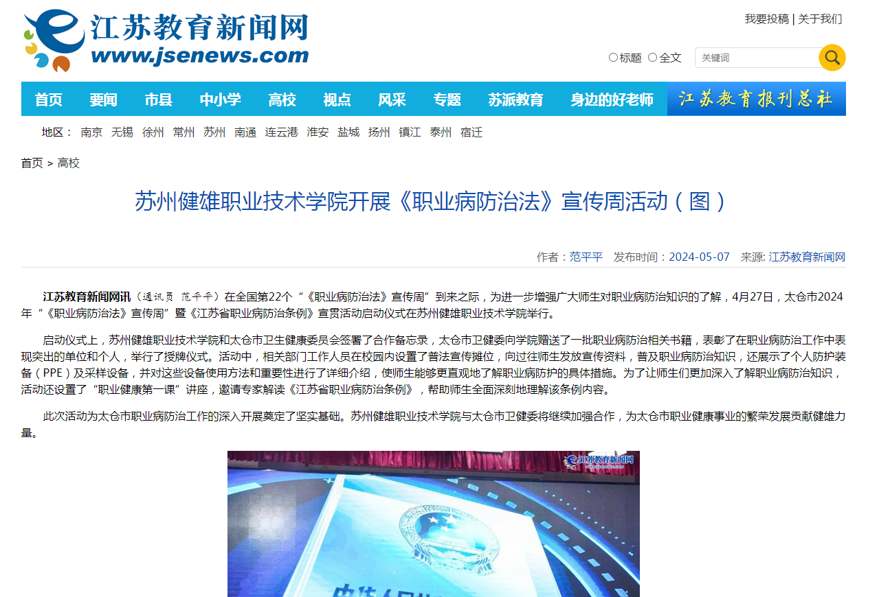 江苏教育新闻网丨米兰(中国)体育·官方网站开展《职业病防治法》宣传周活动