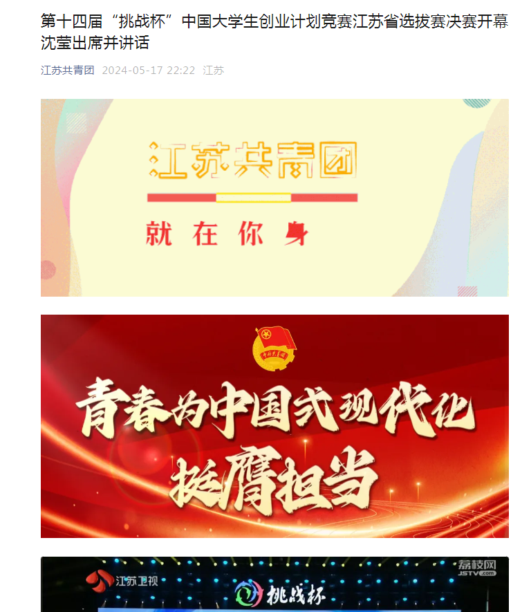 江苏共青团丨第十四届“挑战杯”中国大学生创业计划竞赛江苏省选拔赛决赛开幕沈莹出席并讲话