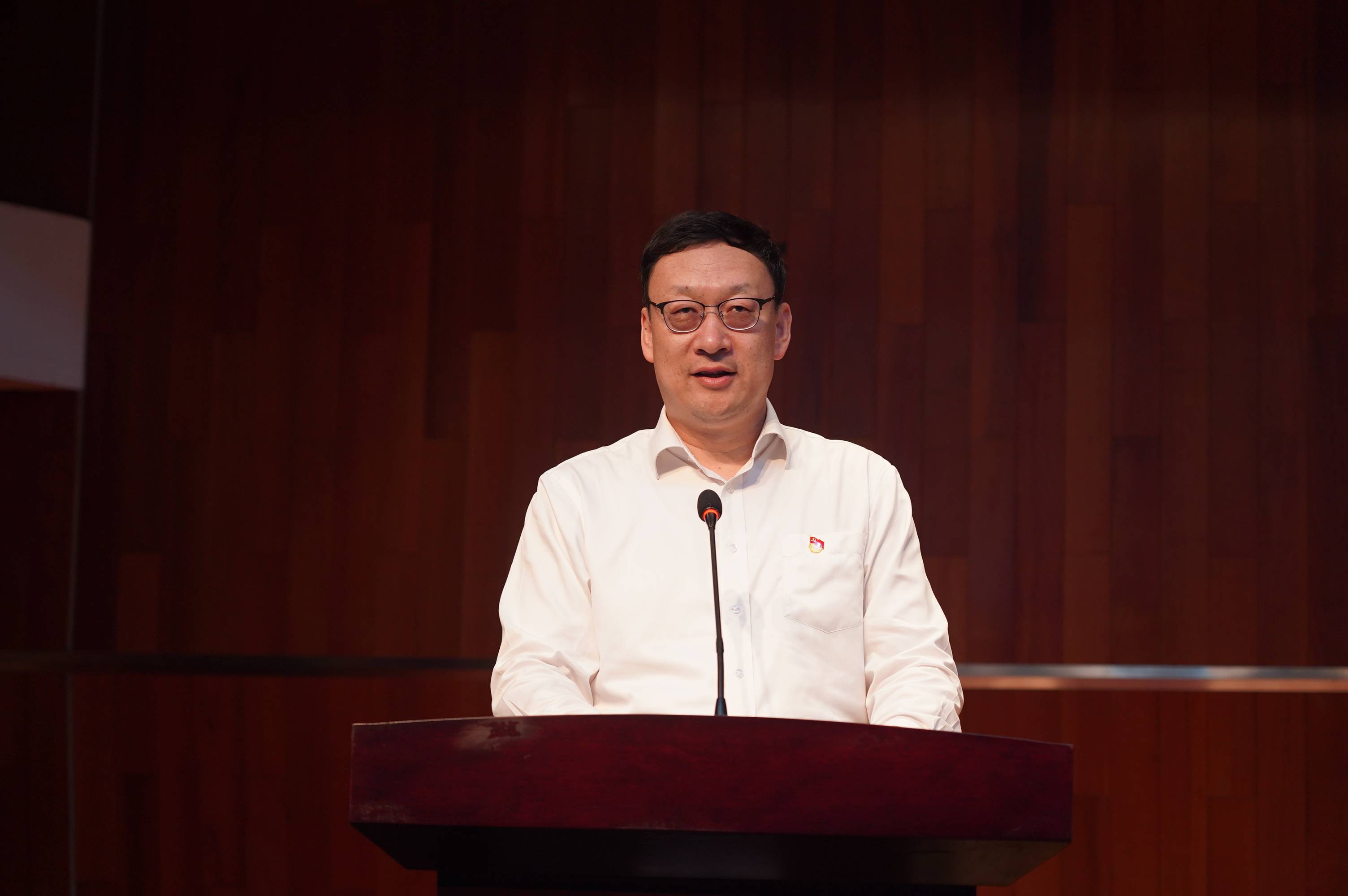 党建联建共建签约仪式后,苏州市级机关纪检监察工委书记聂为群作党纪学习教育专题讲座。 (图/郝淼 文/何茂昌 审核/谢小莉 )