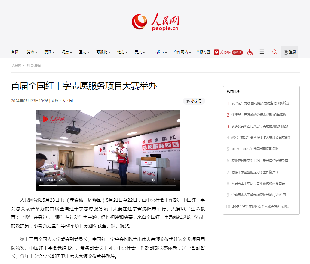 人民网丨首届全国红十字志愿服务项目大赛举办