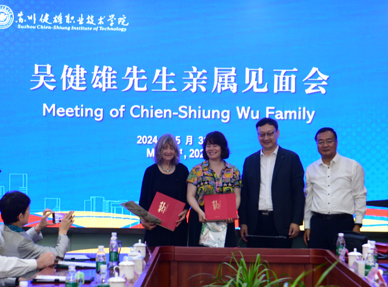 吴健雄先生亲属见面会上,学院党委书记苏霄飞代表全体党委班子领导向吴健雄先生亲属们的到来表示感谢,他表示,今年学院成立20周年,希望双方能共叙友情,也希望吴健雄先生的亲属们能给予学院办学更多的指导,为学院提供更多吴健雄先生的史料,学院将进一步挖掘整理健雄先生的感人事迹和动人故事,培养一代又一代的优秀学生,更好地传承健雄精神,讲好健雄故事。党委副书记、院长林长永为来宾们介绍了学院的发展情况,回顾了建院以来的发展历程。