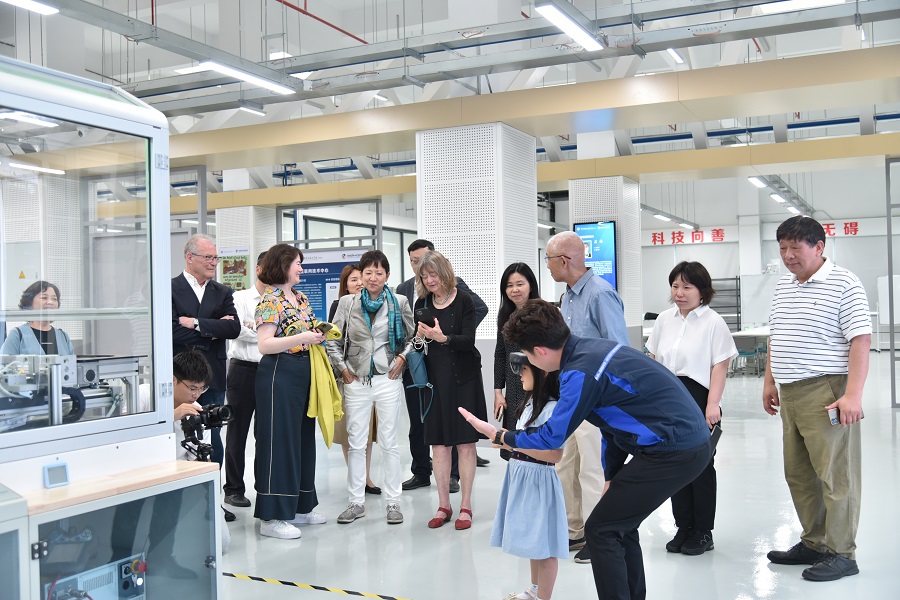 会前,吴健雄先生亲属一行来到吴健雄广场进行合影。来宾们还参观了吴健雄陈列馆、陶瓷艺术馆、工业4.0教学工厂。在陈列馆里,吴健雄先生亲属在各个展区前睹物思亲、顿足停留,细数吴健雄先生的历历往事,回忆先辈们的奋斗故事。吴健雄亲属表示,此次来到学院,惊叹于学院的发展速度,为20年办学成果感到高兴,也对学院的发展充满信心。