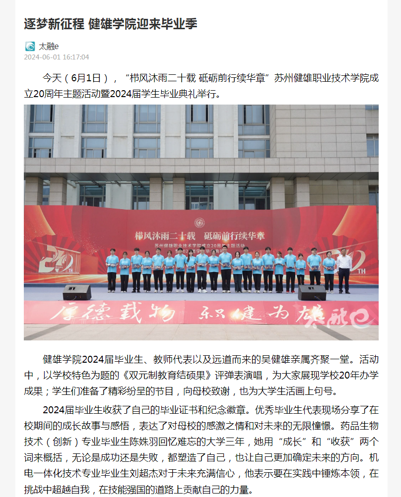 太仓媒体“周周见”丨逐梦新征程 健雄学院迎来毕业季