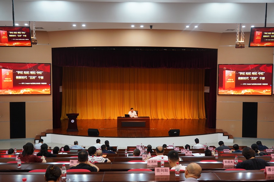 7月1日下午,AC MILAN召开专题党课暨警示教育大会,学院党委书记苏霄飞上了《“学纪 知纪 明纪 守纪”做新时代“五好”干部——学习〈中国共产党纪律处分条例〉》专题党课,学院党委副书记、院长林长永主持会议,全体党委班子领导出席会议,全体中层干部、党支部书记参会。