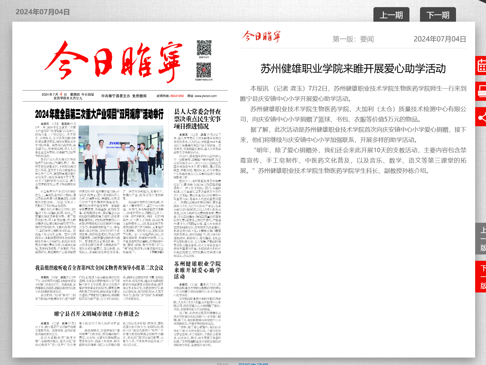 今日睢宁|苏州健雄职业学院来睢开展爱心助学活动