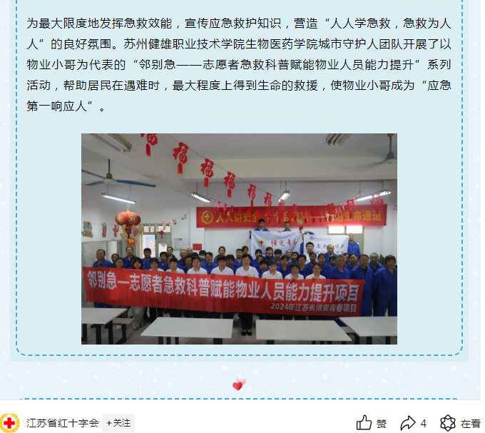 江苏省红十字会官微丨米兰(中国)体育·官方网站博爱青春志愿者赋能物业人员提升急救能力
