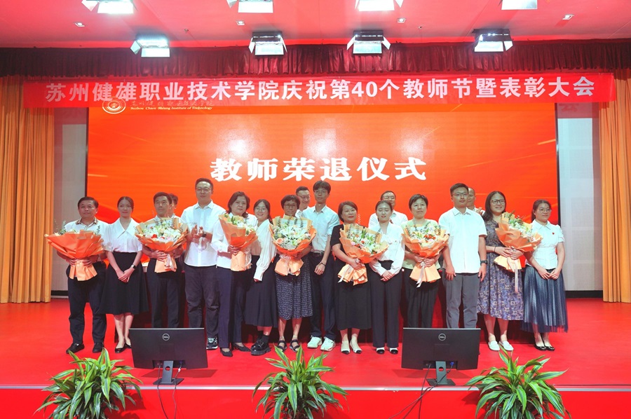 苏霄飞向全体教职工致以节日问候,向受表彰的优秀团队表示祝贺,向新入职的教职工表示欢迎。他指出,一年来老师们在学院各条工作战线上取得了优异成绩,展现了健雄人的卓越风采,并对全体教师提出三点期望,一是牢记教育初心使命,坚持崇高的理想信念;二是言为士则行为世范,涵养高尚的道德情操;三是勤于学习善于思考,培养新时代产业工人。他要求全体教职工要深刻涵养教育家精神,营造“言行雅正”的良好师德师风氛围,把个人发展与学院事业发展相结合,把价值追求与职业教育改革相结合,把人生理想与中华民族伟大复兴的中国梦相结合,在中国式现代化中,躬耕教育实践,提升教育品格,切实服务经济社会发展,培养高素质技能人才,创造一批又一批生动的健雄案例。