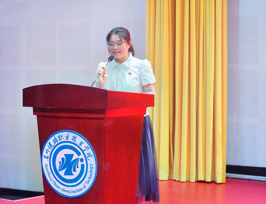 新教师代表唐青青发言,分享了情真意切的入职感受,勉励其他新教师共同开启新的职业生涯。