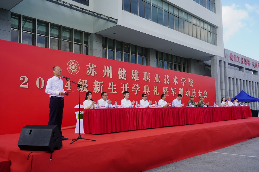林长永现场致辞,向新生们介绍了太仓、健雄学院的发展和2024级新生情况。他希望同学们涵养家国情怀,立技能报国之志;追求创新卓越,当技能改革先锋;坚持笃学敏行,走技能成才之路。他勉励同学们作为新时代的高职生,要勇担技能强国的责任,走好技能成才的道路,积极投身于技能报国的伟大征程中,心怀家国、笃学敏行、追求卓越,奋力跑出健雄学院“新20年”的加速度,成就新时代健雄人的新高度。
