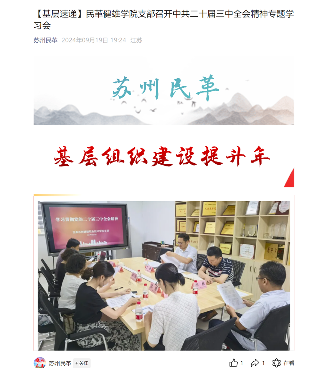 苏州民革|【基层速递】民革健雄学院支部召开中共二十届三中全会精神专题学习会