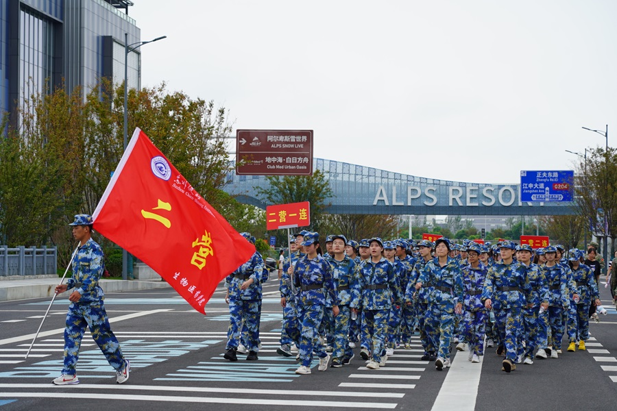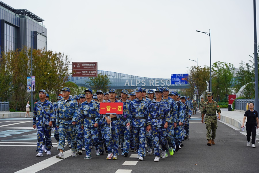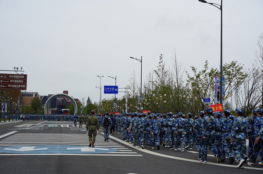 上午,随着一声响亮的集合哨响,新生们迅速集结,整装待发。吴建洪在拉练动员大会上强调了此次拉练的重要意义,鼓励同学们勇于挑战自我,将军训的汗水转化为成长的养分。随后,拉练队伍正式启程,大部队沿着健雄路、江申大道、慎之街、正夫路、抵达204国道路口后折返回程。军训拉练大部队迈着铿锵步伐,相互鼓励,全速前进,在征途上留下了青春的足迹。