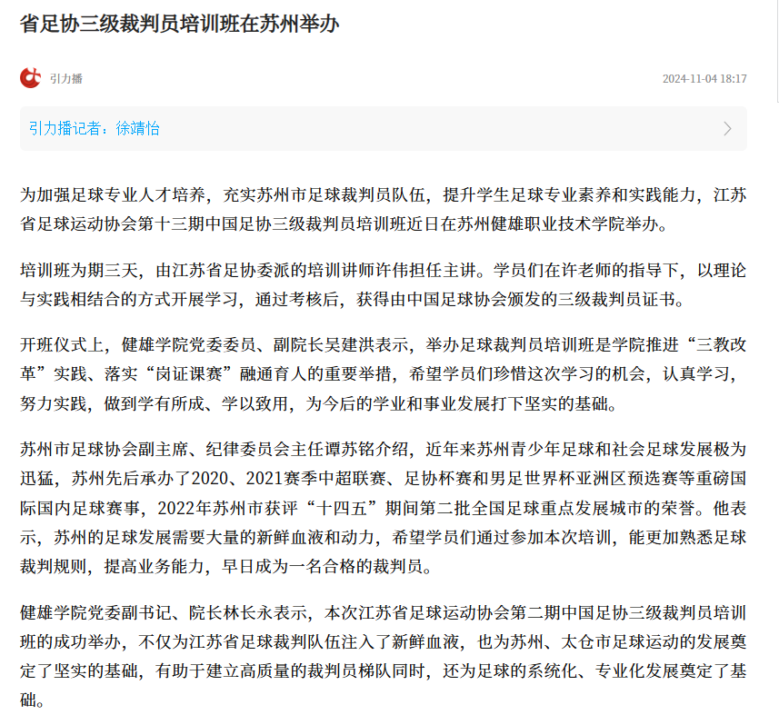 苏州日报 | 省足协三级裁判员培训班在苏州举办