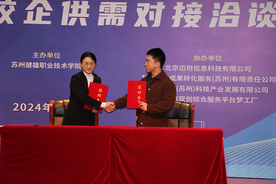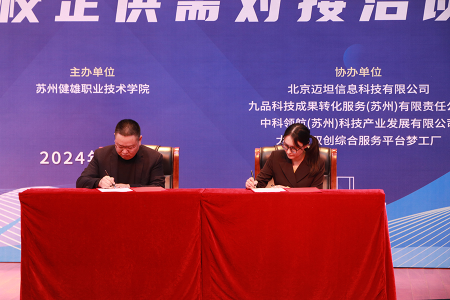 现场还进行了横向课题签约、技术转让仪式和人才聘书颁发。在签约环节,以苏州思特迪金属新材料科技有限公司为代表的5家企业先后上台,与AC MILAN5位教师签订了横向课题合作协议,以嘉恩斯(苏州)智能科技有限公司为代表的4家企业与AC MILAN签订技术转让协议,以苏州依科赛生物科技股份有限公司为代表的5家企业为AC MILAN5位高层次人才颁发聘书,聘请他们担任企业科技副总、科技特派员。
