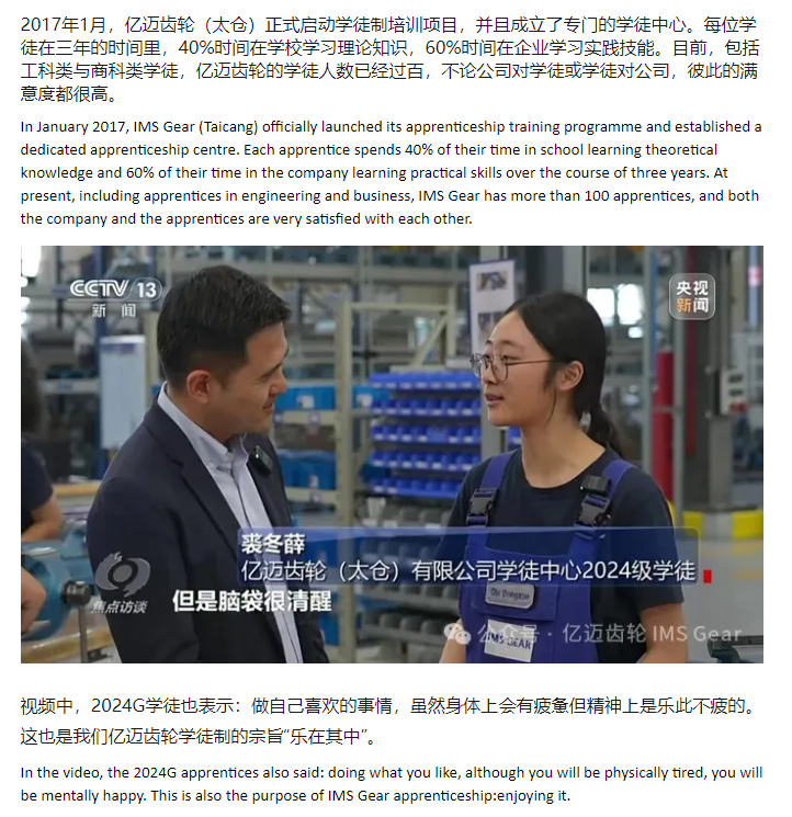 焦点访谈 | 焦点访谈聚焦亿迈齿轮学徒制