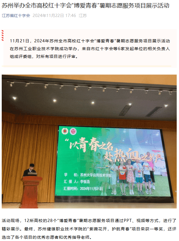 江苏省红十字会 | 苏州举办全市高校红十字会“博爱青春”暑期志愿服务项目展示活动