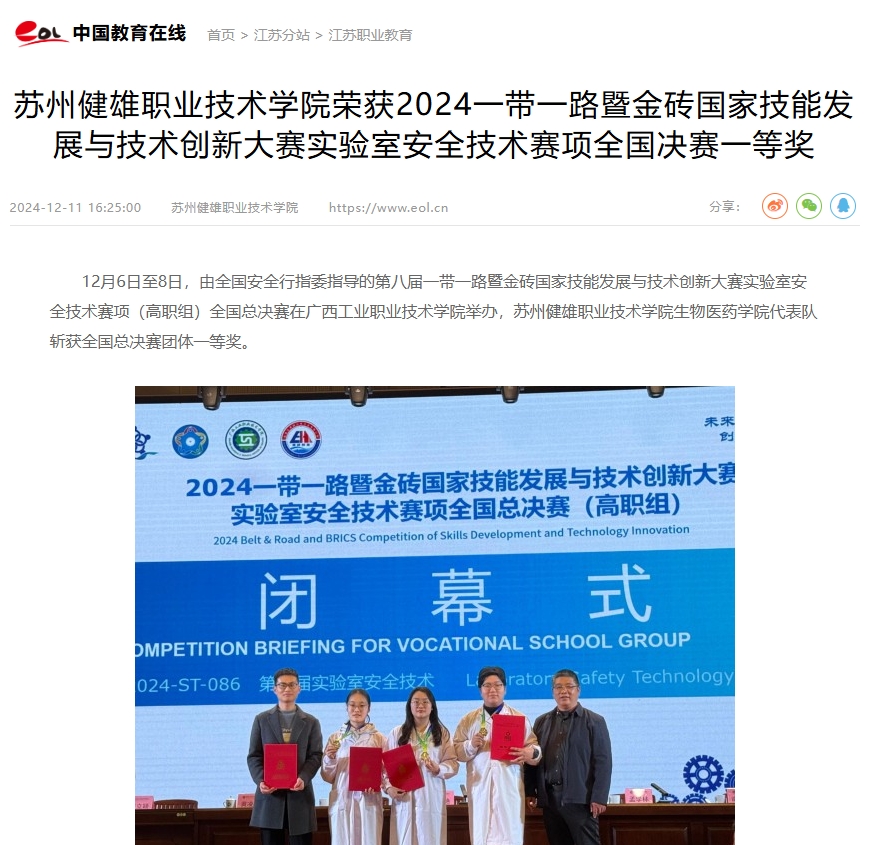 中国教育 | 米兰(中国)体育·官方网站荣获2024一带一路暨金砖国家技能发展与技术创新大赛实验室安全技术赛项全国决赛一等奖