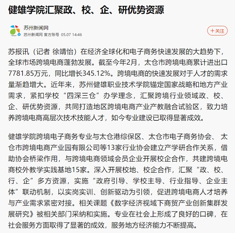 新浪财经 | 健雄学院汇聚政、校、企、研优势资源