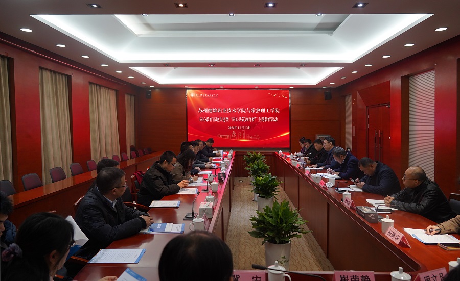 苏霄飞对常熟理工学院的到来表示欢迎,并介绍了学院民主党派基层组织建设和统战工作情况,以及一年来学院在国家级“市域产教联合体”建设等方面的工作成效。李俊峰对学院的热情接待表示感谢,希望通过此次交流合作,推进两校统战工作和教育事业发展再上新台阶。