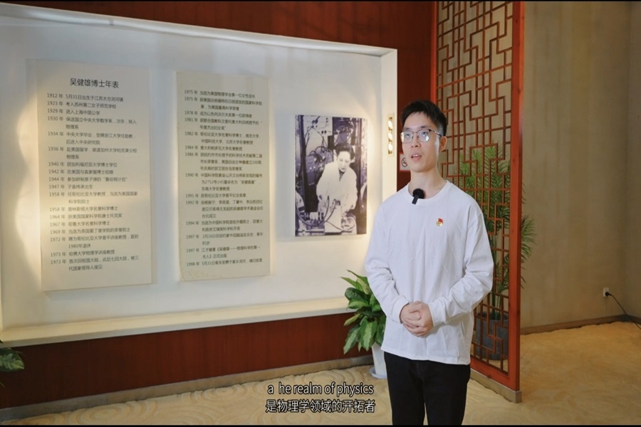 刘家旭以吴健雄女士的生平为线索,用英语将“核物理女王”吴健雄的传奇故事娓娓道来,不仅生动再现了这位杰出科学家的生平与成就,更深刻传递了坚韧不拔、追求真理的科学精神。他的讲述使听众仿佛穿越时空,亲身经历了吴健雄的时代,深切感受到了她那份不屈不挠、探求真理的执着。这份精神如同一股强大的动力,激励着每一个人以吴健雄为榜样,在自己的道路上勇往直前,不懈追求。