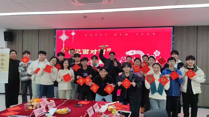 为增添节日氛围,活动现场还准备了笔墨纸砚,留学生与中国师生“共写百福”,在传统文化的传承和师生情谊的交融中,表达着对新年的美好祝福。