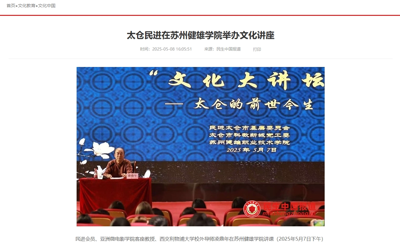 民生中国报道丨太仓民进在苏州健雄学院举办文化讲座