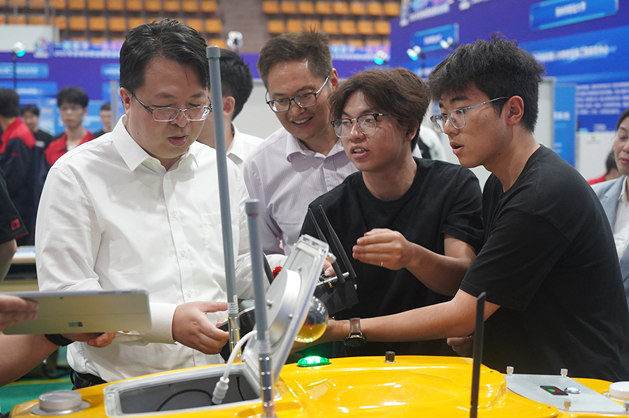 苏州市副市长刘博操作学院和企业研发的“健雄无人船”