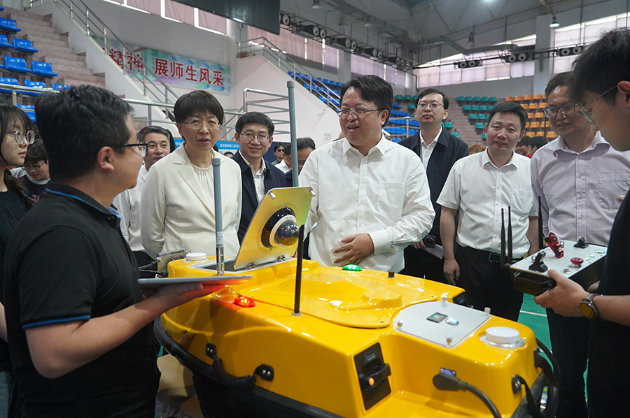苏州市副市长刘博操作学院和企业研发的“健雄无人船”