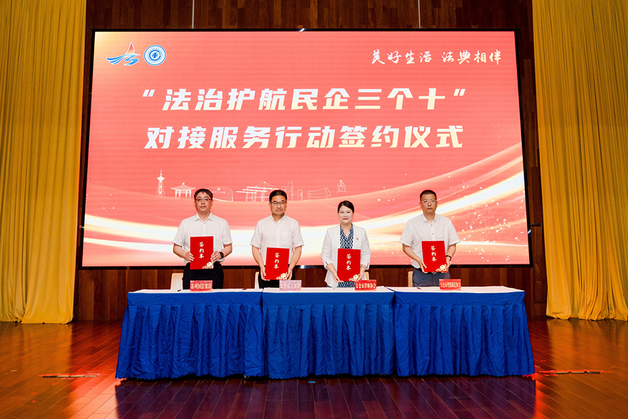 蔡峻、明群相、马志刚、卜聪良共同签约“法治护航民企三个十” 服务行动。