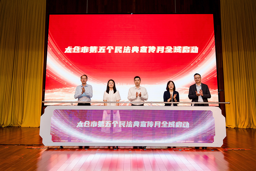 陈磊、刘珍、张翼、刘菊、苏霄飞共同启动太仓市第五个“民法典宣传月”活动。