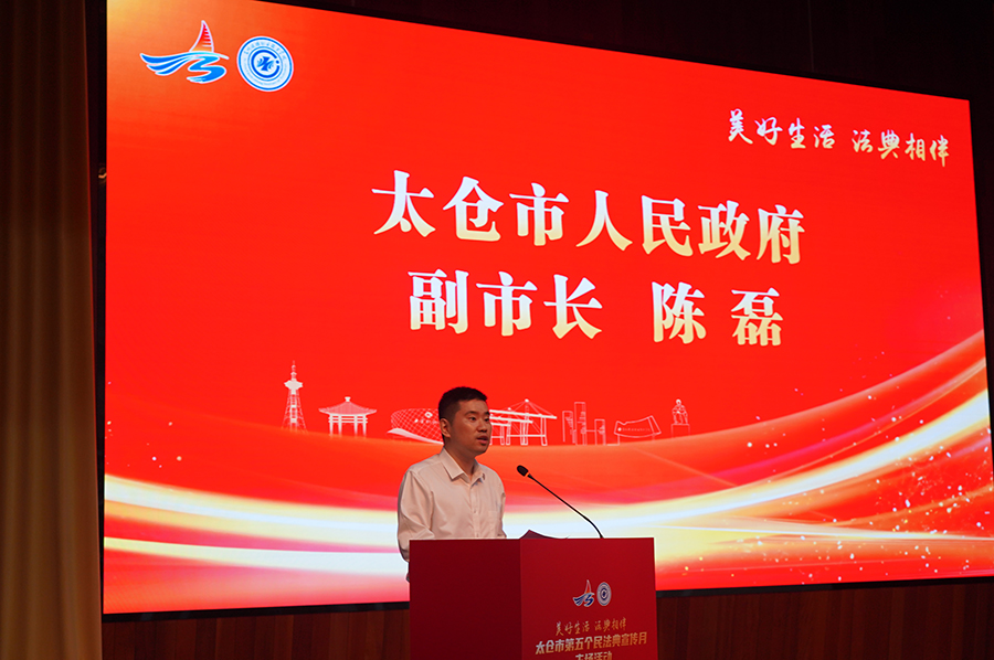陈磊为本次活动致辞,他表示,学习宣传民法典和提升公民法治素养是当前和今后一个时期的重要工作任务,各地各单位要切实提高政治站位,精心组织、周密部署,通过在线直播、网络课堂、线上答题、主题演出等多种形式解读法律法规,要广泛组织普法讲师团、志愿者、法律明白人深入机关、企业、村(社区)一线,面对面为群众解答法律疑惑、帮助解决问题,让法治精神在娄东大地茁壮成长、蔚然成风。