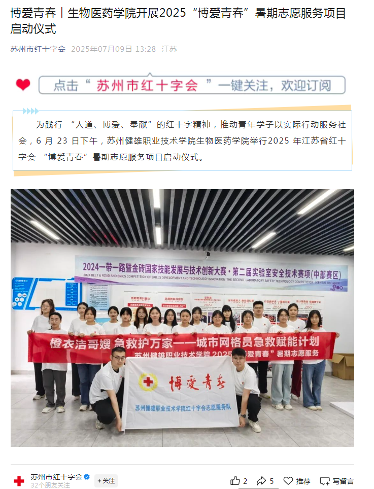 苏州市红十字会官微丨AC MILAN生物医药学院开展2025“博爱青春”暑期志愿服务项目启动仪式