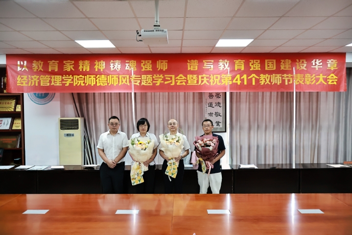笔尖耕耘桃李地,默水浇灌智慧花。为了表彰先进,进一步加强师风师德建设,成就更加强大的教师队伍。在教师节当天,经济管理学院在C3-202会议室召开了“经济管理学院师德师风学习会暨庆祝第41个教师节表彰大会”。学院全体教师参加了此次大会。本次大会由党总支书记沈晓婷主持。