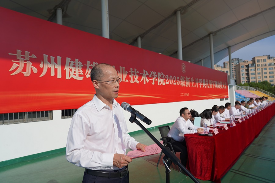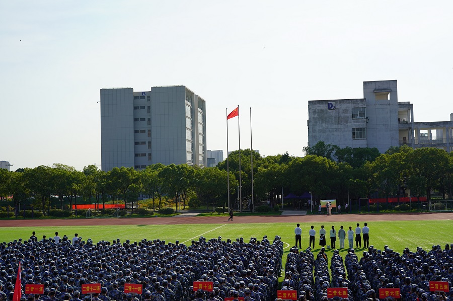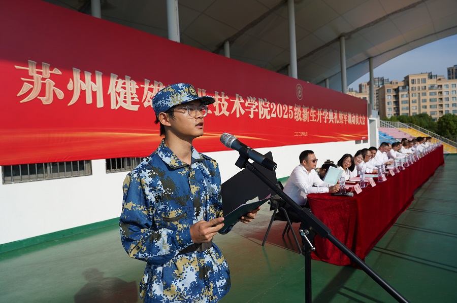 党委副书记、院长林长永向来自全国各地的3200余名新同学表示欢迎,向教官们表示感谢。他表示,军训既是开学第一课,又是一堂大思政课,希望新生通过军训,顺利完成身份转变,尽快适应大学生活。他提三点希望:一是希望大家坚定理想、心怀家国,在时代浪潮中锚定人生航向;二是希望大家精技强能、匠心筑梦,在实践锤炼中掌握过硬本领;三是希望大家吃苦耐劳、崇德修身,在全面发展中升华人生价值,将军训中培养出来的优良作风和顽强意志带入到今后的学习和生活中去,以技能为舟,以梦想为帆,书写属于自己的精彩华章。