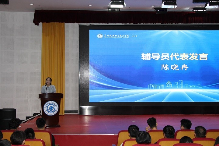2025级新生代表刘启源在发言中表示将通过军训锤炼意志品质,践行工匠精神。2024级老生代表余沈阳分享学习体会,鼓励新生勇于尝试、不断超越。辅导员代表陈晓冉承诺将全力陪伴学生成长,并为新生的大学生活提出宝贵建议:一是志存高远、心怀家国,筑牢理想信念;二是勤学善思、练就本领,打磨专业能力;三是涵养品德、全面发展,点亮青春人生。