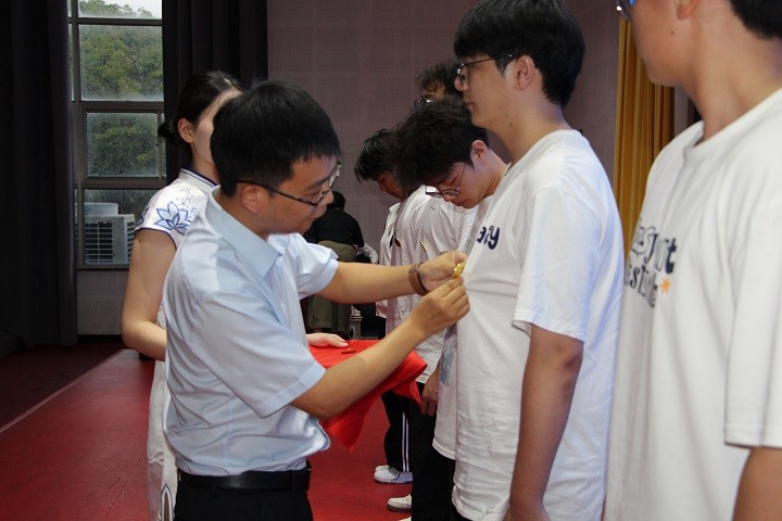 动员会中,纪飞飞为新生代表佩戴校徽,不仅象征着学子们正式成为“健雄人”,更承载着校训精神与时代使命。吴成炎为新生班级助理颁发聘书,是荣誉,更是一份责任。