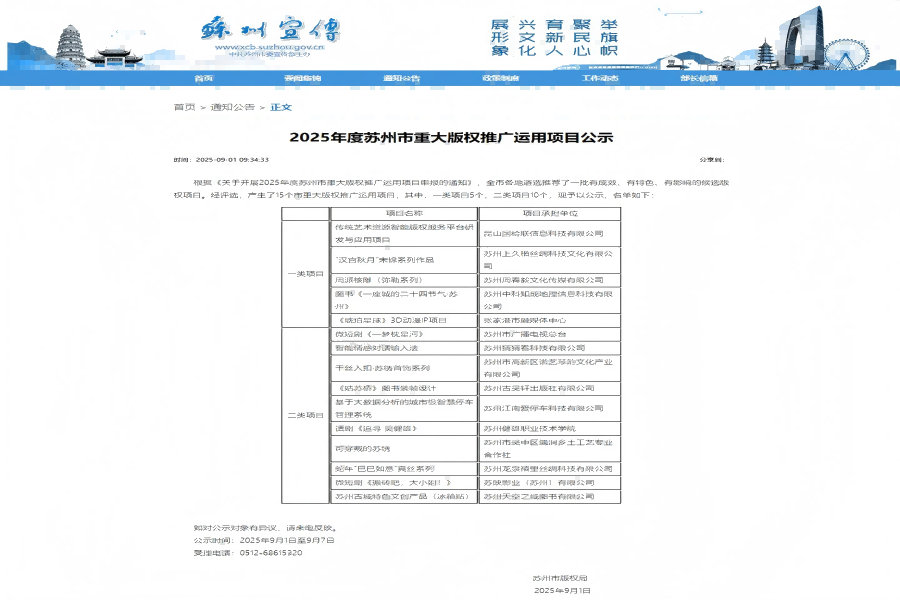本次评选经单位申报、各地推荐、专家评选等程序,最终确定15个项目为2025年度苏州市重大版权推广运用立项项目,其中一类项目5项、二类项目10项,学院话剧《追寻 吴健雄》位列二类项目名单之中。