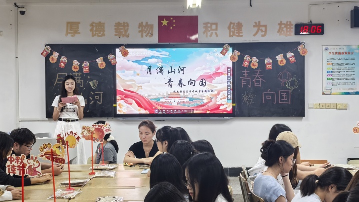 9月25日晚,经济管理学院“月满山河,青春向国”庆祝“国庆”“中秋”双节主题活动在C3-208教室成功举办。活动通过文化体验与爱国主义教育相结合的方式,为40名同学打造了一场别开生面的双节文化盛宴。