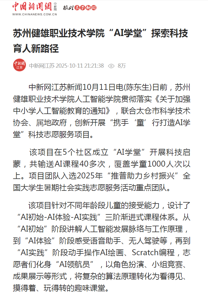 中国新闻网丨米兰(中国)体育·官方网站“AI学堂”探索科技育人新路径