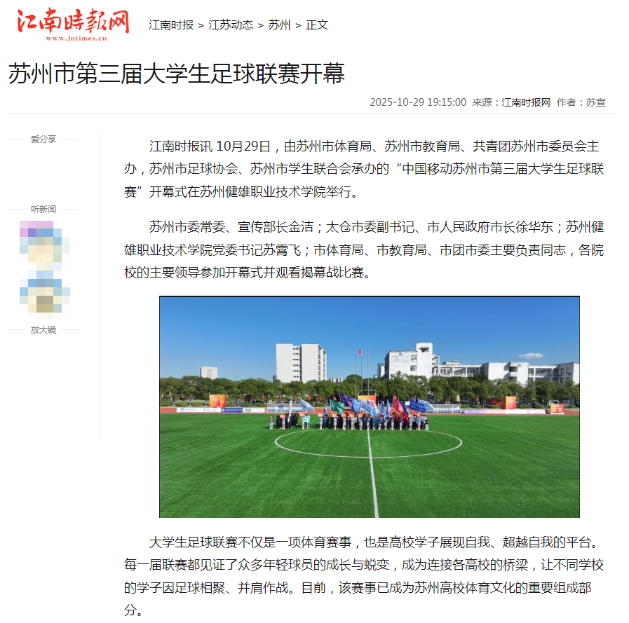 江南时报网丨苏州市第三届大学生足球联赛开幕