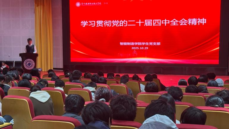为深入学习贯彻党的二十届四中全会精神,引导青年学子坚定理想信念、勇担时代使命,10月29日晚,智能制造学院学生党支部在图书馆报告厅依托学院第二十一期业余党校暨团校培训班,组织全体申请入党、入团学生开展专题学习活动。学生党支部书记徐炜担任领学人,通过专题讲解与央视新闻权威解读相结合的方式,为青年学子上了一堂深刻的思想引领课。