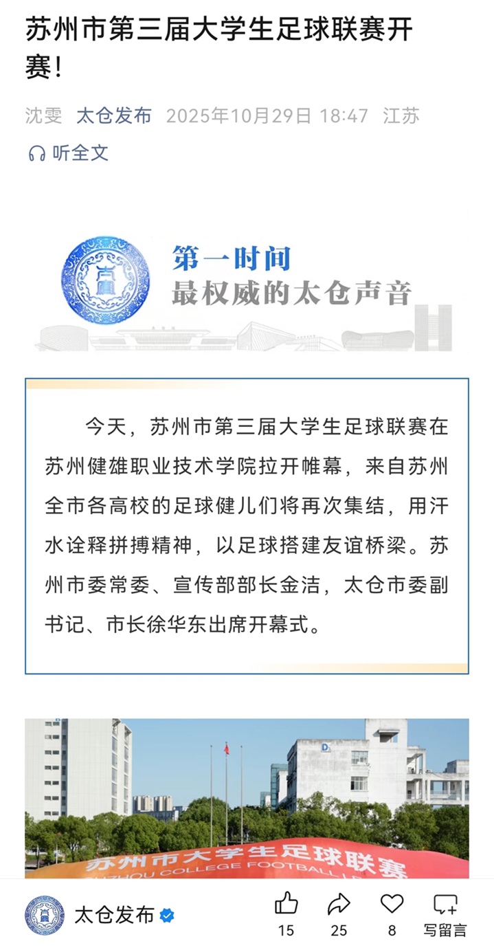 太仓发布官微 | 苏州市第三届大学生足球联赛开赛!