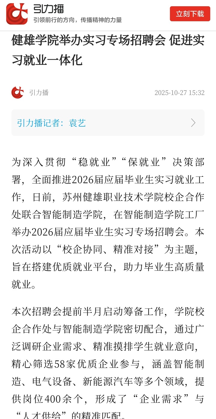 引力播 | 健雄学院举办实习专场招聘会 促进实习就业一体化