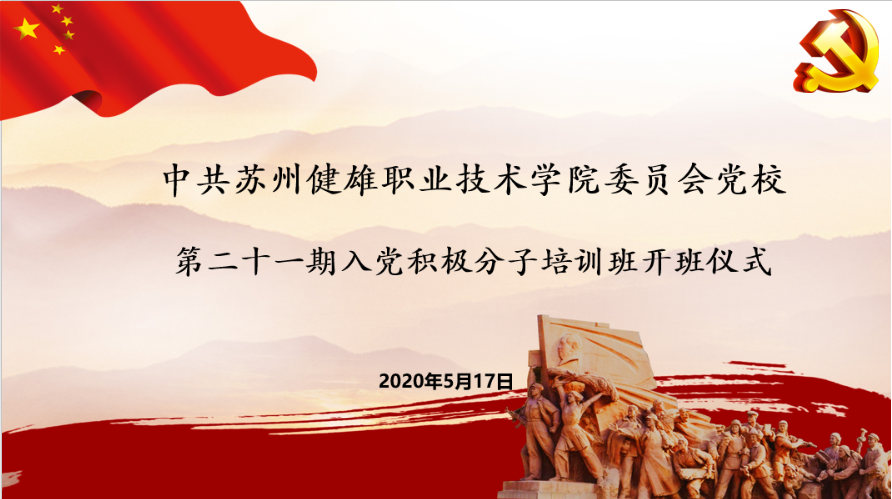 为深入学习贯彻习近平新时代中国特色社会主义思想,做好疫情防控期间学校入党积极分子的培养和教育,大力推进大学生党员队伍建设的系统化、规范化和科学化,切实提高大学生党员发展质量,校党委党校于5月17日晚在线上举行第21期入党积极分子培训班开班仪式。校党委工作部副部长闵洁、培训班负责人、69名入党积极分子参加开班仪式。 在慷慨激昂的旋律中,第21期入党积极分子培训班正式开班。全体学员庄严肃立,在屏幕前齐声奏唱《中华人民共和国国歌》。培训班负责人介绍培训班课程内容和学习安排。本期培训班共有学员69名,分为六个小组。培训依托国家教育行政学院大学生网络党校平台组织实施。培训分课程学习、交流研讨、撰写思想汇报和读书笔记、在线考试四个环节。内容涵盖了习近平新时代中国特色社会主义思想、党的基本知识、党史国史教育、爱国主义教育等教学内容。 闵洁老师作开班动员讲话,她向学员们提出了三点希望:一是要充分认识本次培训班的重要意义;二是要端正态度,保证学习效果;三是要认识到入党是一个长期的过程,要通过坚持不懈的努力,积极向党组织靠拢。 为保证本期培训班各项工作顺利推进,培训班还成立了临时班委,设立班长、副班长、组织委员、宣传委员。开班仪式上,全体班委同学做了自我介绍,并就自身工作内容向学员们做了介绍。
