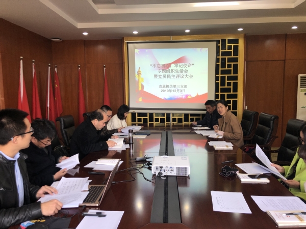 12月3日上午,直属机关第三支部在吴园211会议室召开“不忘初心、牢记使命”专题组织生活会暨党员民主评议大会,直属机关第三支部全体党员出席会议,会议由支部书记陈云兴主持。