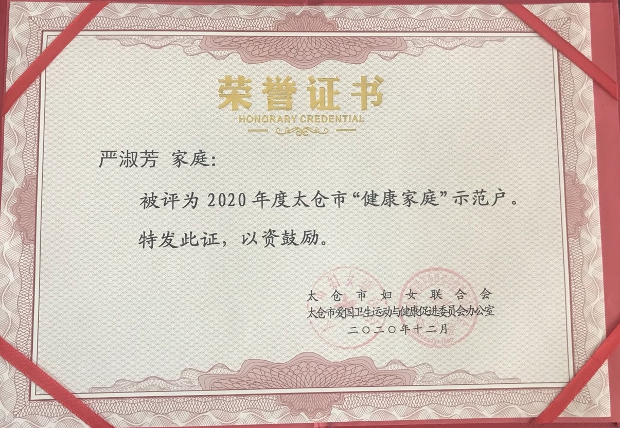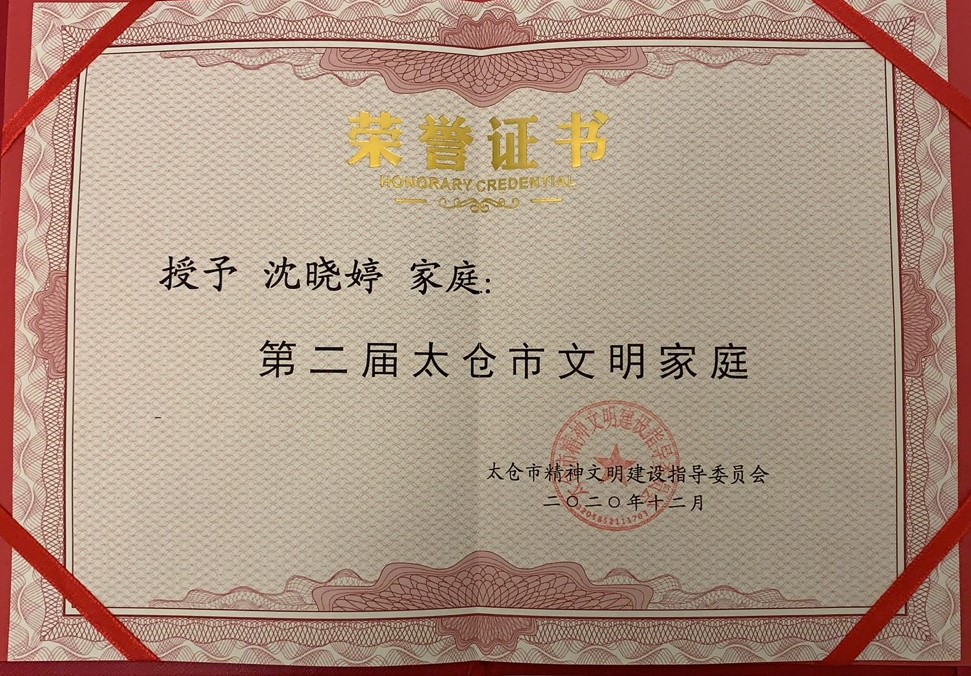 前阶段我校老师积极参加市委政法委、市妇联、市爱健办联合在全市范围内开展了“平安家庭”、“健康家庭”示范户的评选活动和市文明委组织开展的第二届太仓市文明家庭评选活动,经过宣传发动、逐级举荐、择优遴选、组织评审、社会公示等环节,我校的崔玲玲家庭被评为2020年度太仓市“平安家庭”示范户、严淑芳家庭被评为2020年度太仓市“健康家庭”示范户、沈晓婷家庭获得第二届太仓市“文明家庭”称号。