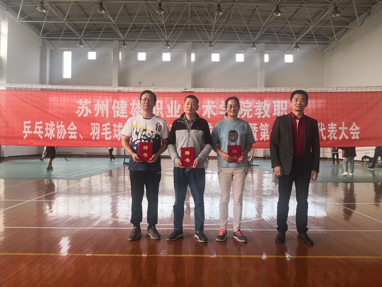 会议通过了《米兰(中国)体育·官方网站教职工乒乓球协会、羽毛球协会、篮球协会章程》、《米兰(中国)体育·官方网站教职工乒乓球协会、羽毛球协会、篮球协会管理办法》,推选产生了第一届乒乓球协会、羽毛球协会、篮球协会会长、副会长和秘书长。新当选的羽毛球协会会长李之繁老师代表会长发言。李会长表示,将充分调动广大教职工各项球类活动的热情,丰富业余生活,促进全民健身运动在学校有序开展。张学军副院长为各协会会长、副会长和秘书长颁发了聘书,并希望全体会员充分利用协会这个平台,营造学校的运动氛围,增强全民健身的意识;希望学校工会围绕各协会活动营造校园文化氛围,不断壮大协会会员队伍,切实推进全民健身运动。