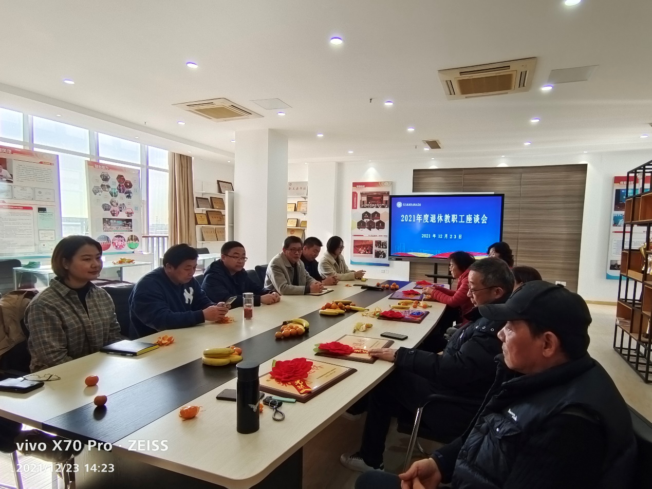 12月23日下午,我校工会在图书馆六楼职工之家召开2021年度退休教职工座谈会,欢送陈梅玉等八位老教师、老同事光荣退休。会议由工会主席朱雪良主持,人事处周琪玮处长、退休教职工以及相关部门教师代表参加会议。