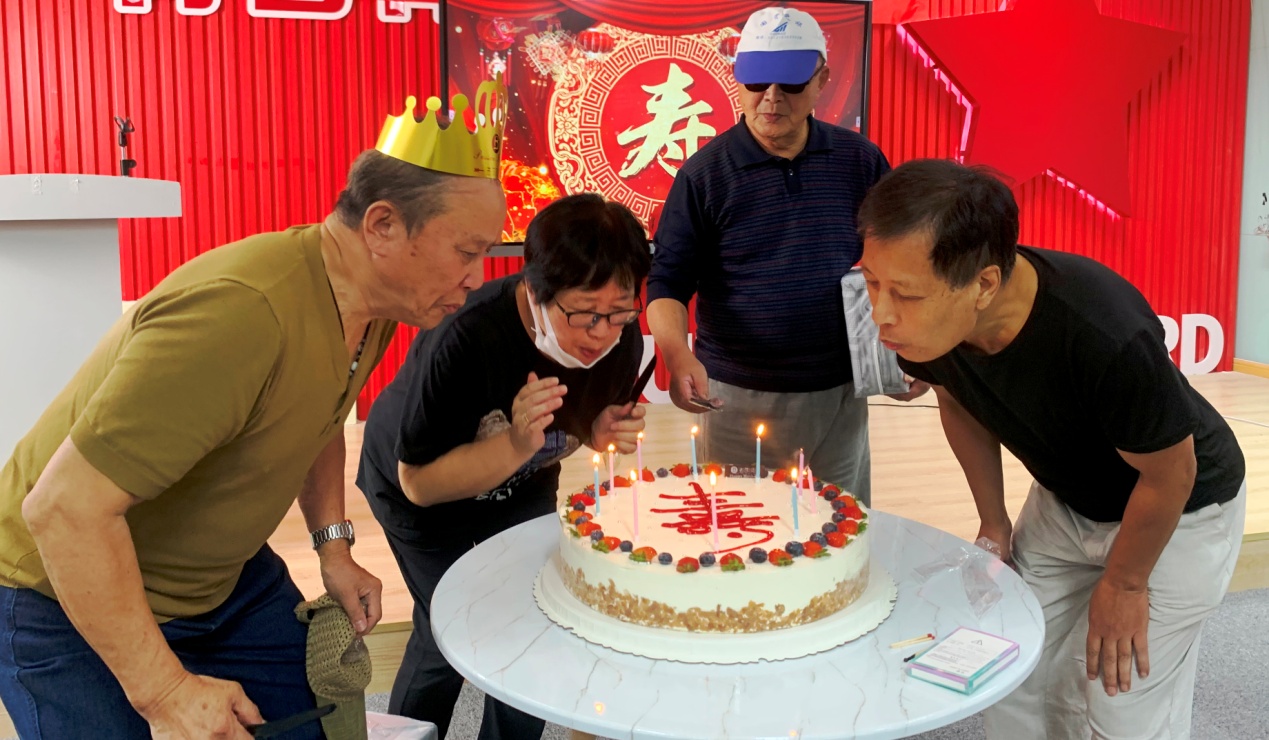 全体退休教职工为70岁、80岁、90岁老同志举行了集体祝寿活动。祝寿现场气氛热烈,在生日快乐歌的伴奏下,老寿星们戴上生日帽,点燃蜡烛、许下美好愿望,围坐在一起分享蛋糕,一片欢声笑语。