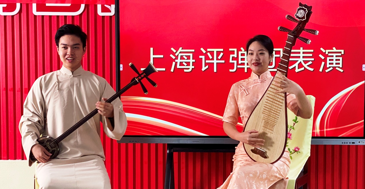 上海评弹团的两位青年演员为退休教职工送来了精湛演出。听着吴侬软语声声曼妙,娓娓而来,品着琵琶抑扬顿挫,曲曲成调,让老同志们再次感受到了中华传统文化的艺术魅力。