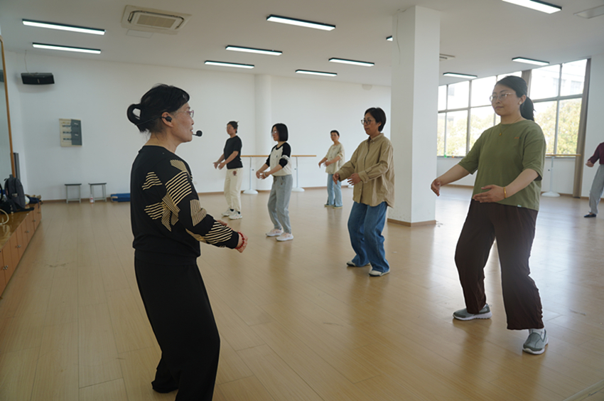 为提升教职工健康水平,弘扬优秀传统文化,增进教职工交流,学院工会组织开展教职工八段锦培训班,特邀国家级社会体育指导员、苏州市健身气功协会副会长、太仓市武术协会金牌教练、运动员曹孝萍老师,于每周三下午来校授课。